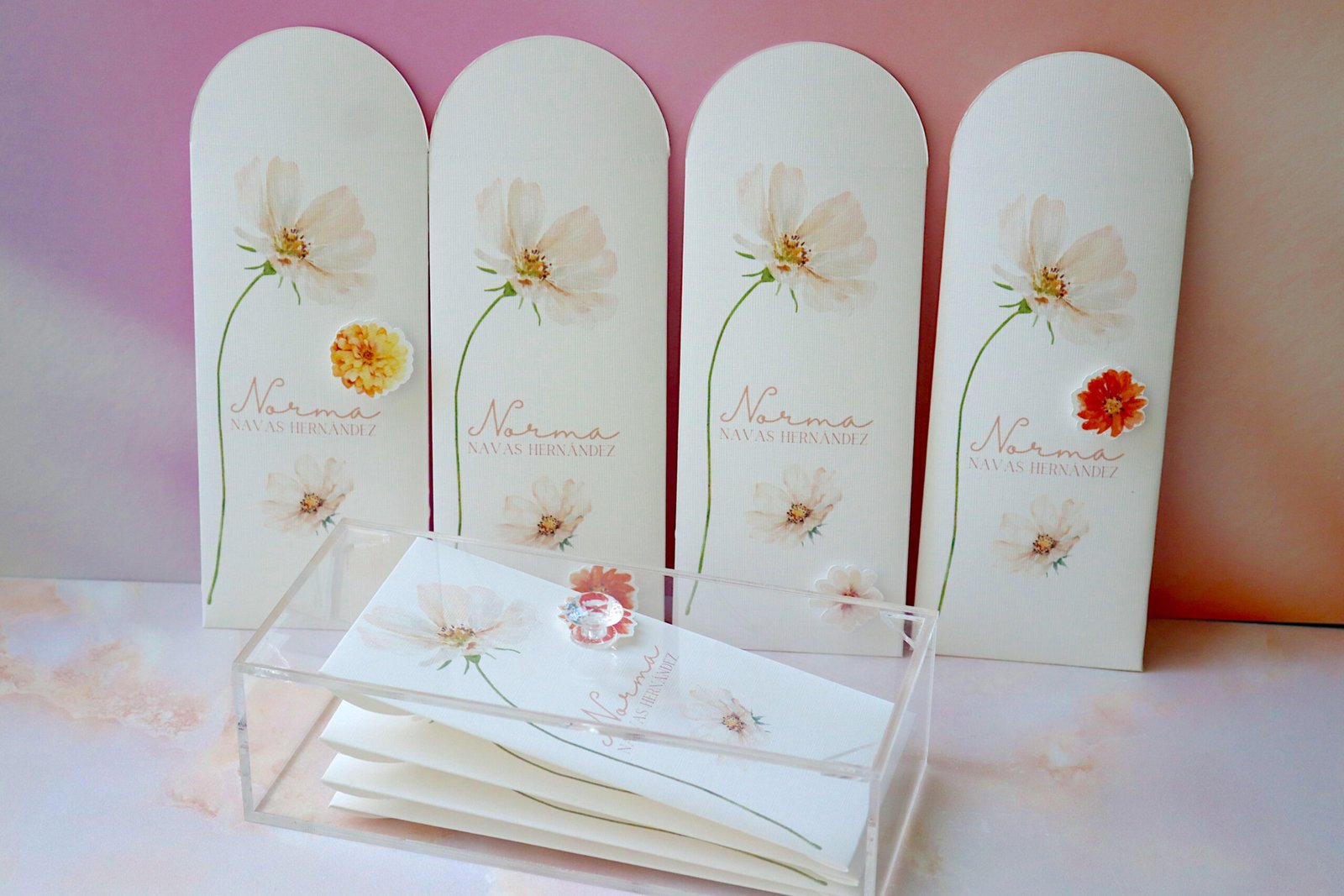 Todas nuestras presentaciones van a dejarte encantada, cuidamos cada detalle, desde la papelería hasta las cajas de acrílico y clearbox.