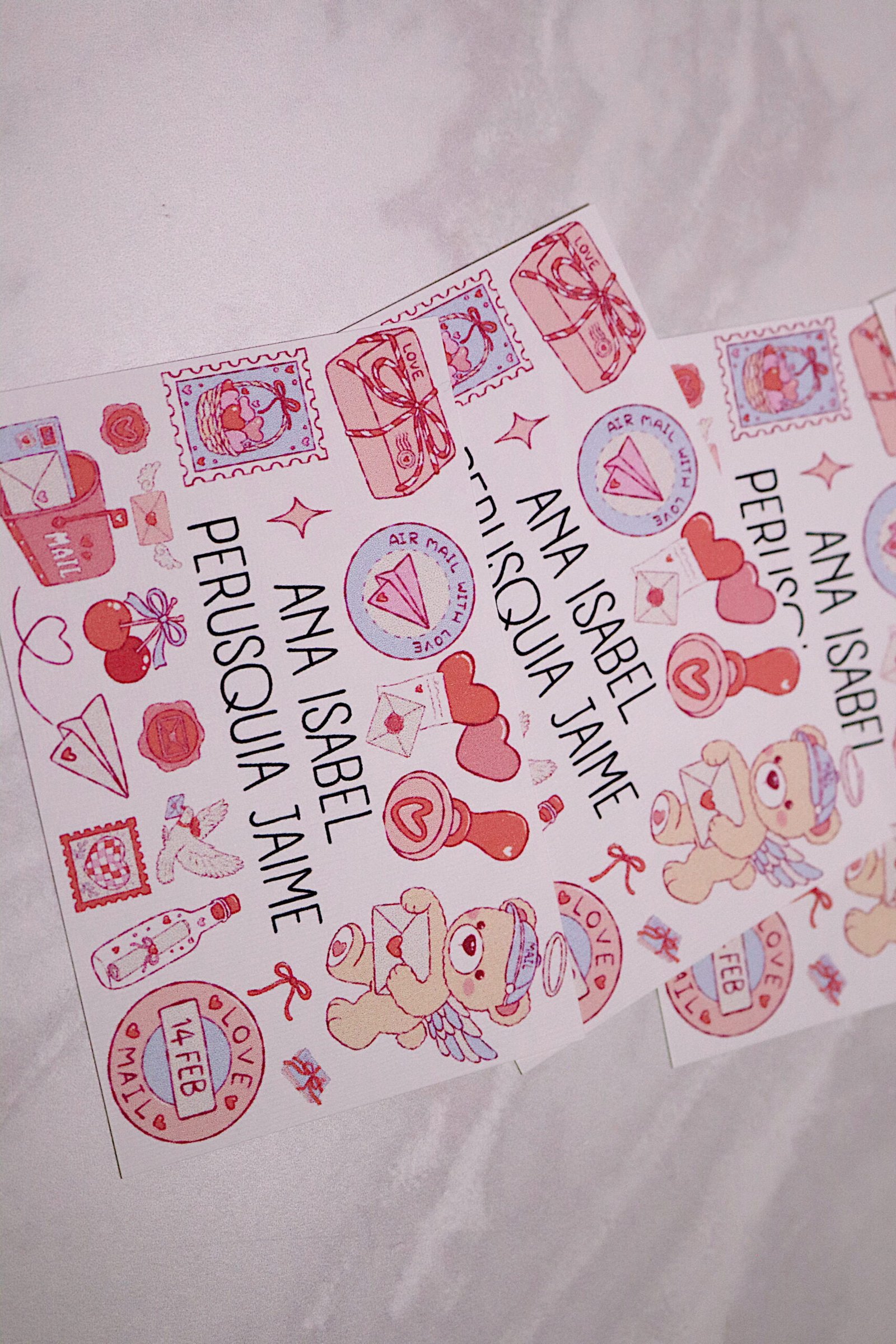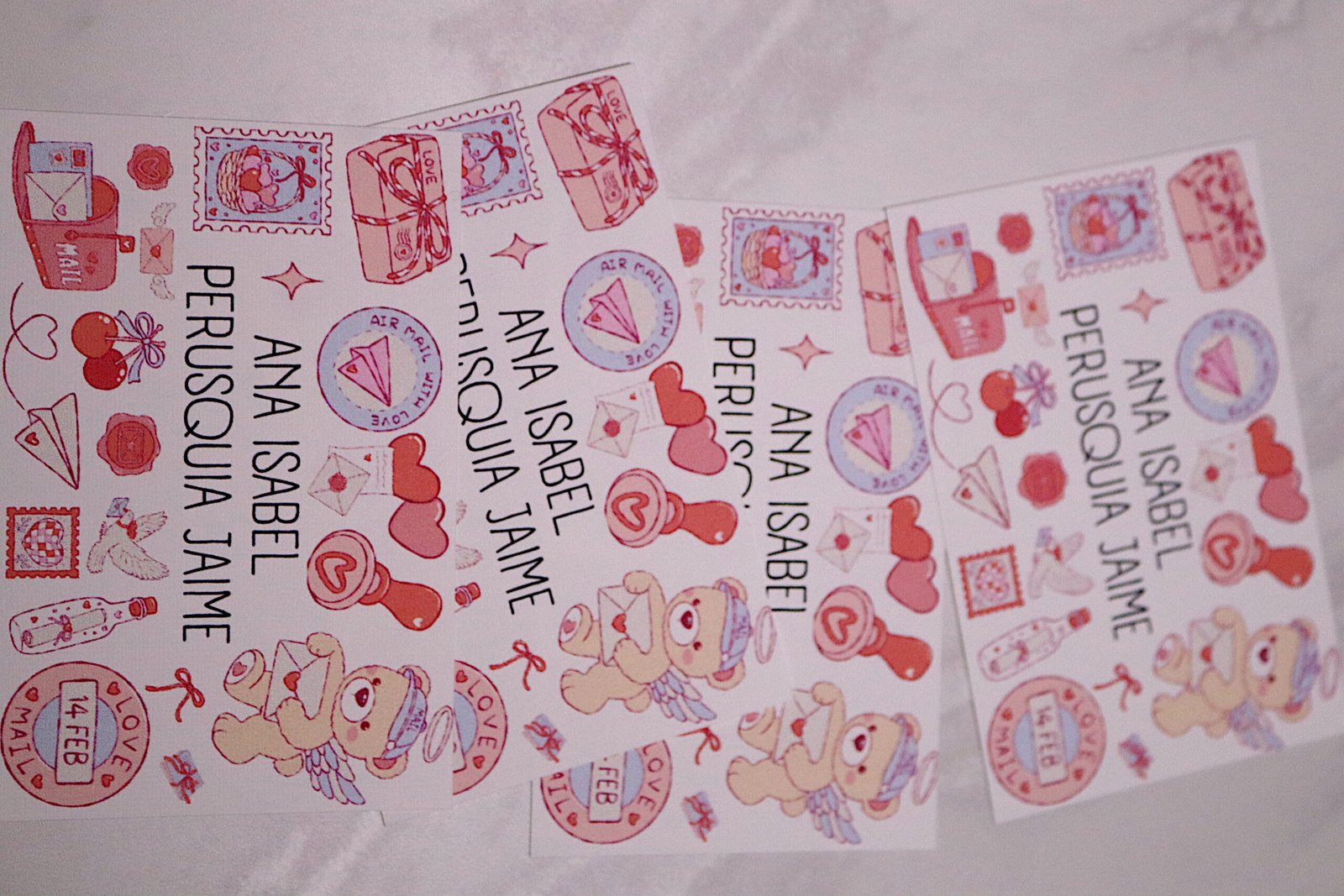 12 Tags impresos con tematica de San Valentin con adhesivo por detrás para pegar directo a tus regalos.